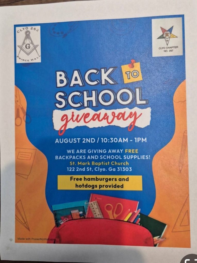 Clyo Lodge No. 262 and Clyo Chapter No. 297 joined together to host a vibrant and impactful Back to School Giveaway for the youth and families of their community. Students received free backpacks, school supplies, and books to help them begin the upcoming school year prepared and encouraged. Families also enjoyed food, fellowship, and supportive conversations with members of the Lodge and Chapter.